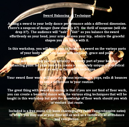 Belly Dancing Divas presents a sword balancing technique belly dance workshop.